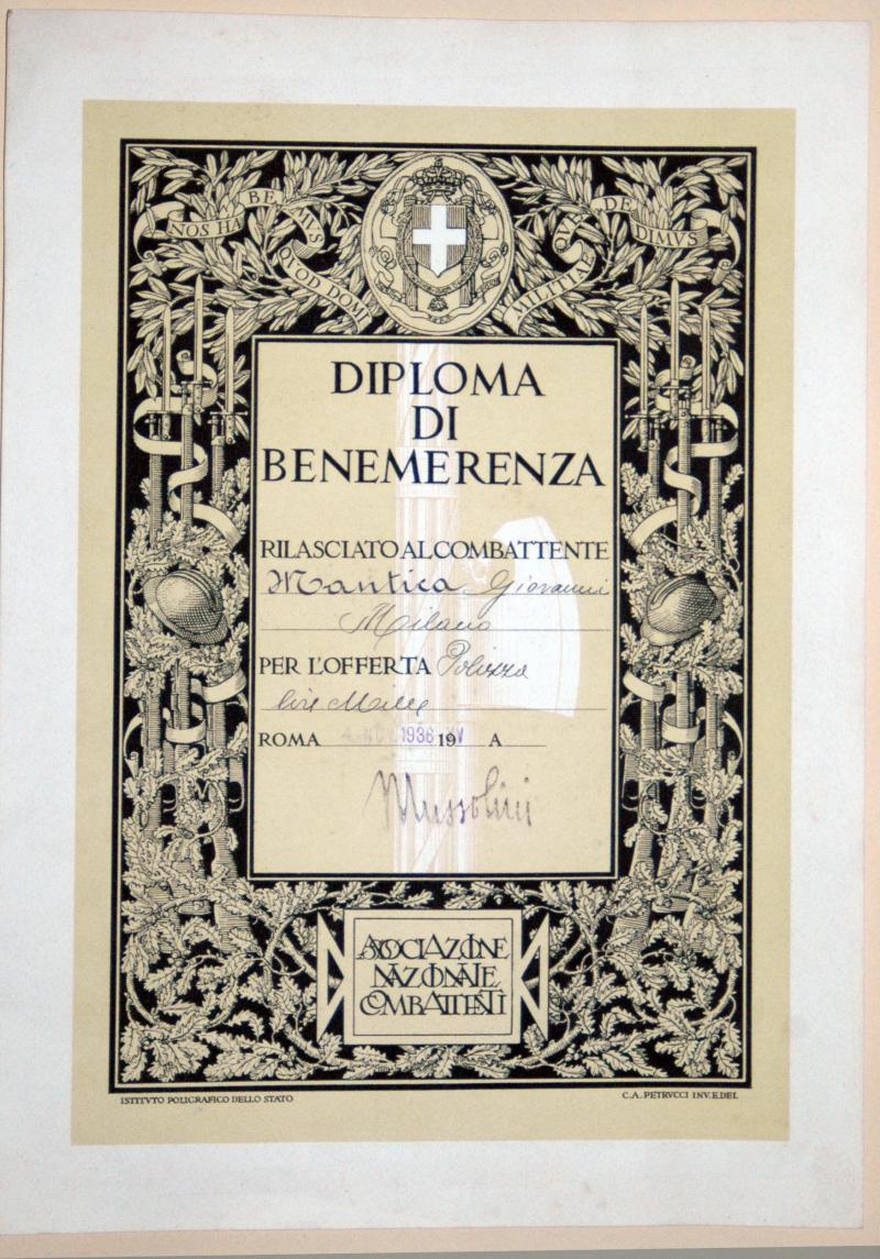 Diploma di benemerenza Associazione Nazionale Combattenti (431)